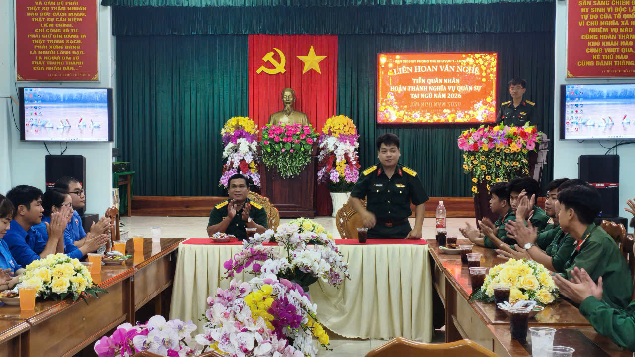Tối ngày 27/01/2026, Ban Chỉ huy Phòng thủ khu vực 1 – Long Phú tổ chức liên hoan văn nghệ tiễn quân nhân hoàn thành nghĩa vụ quân sự tại ngũ năm 2026. Đến dự có đồng chí Thượng tá Nguyễn Phú Xuân Vinh, Bí thư Đảng uỷ, Chính ủy Ban Chỉ huy phòng thủ khu vực 1 – Long Phú và Trung tá Phạm Hoài Thanh – Phó Chính ủy Ban Chỉ huy phòng thủ khu vực 1 – Long Phú, cùng lực lượng thanh niên Đoàn phường Long Phú.