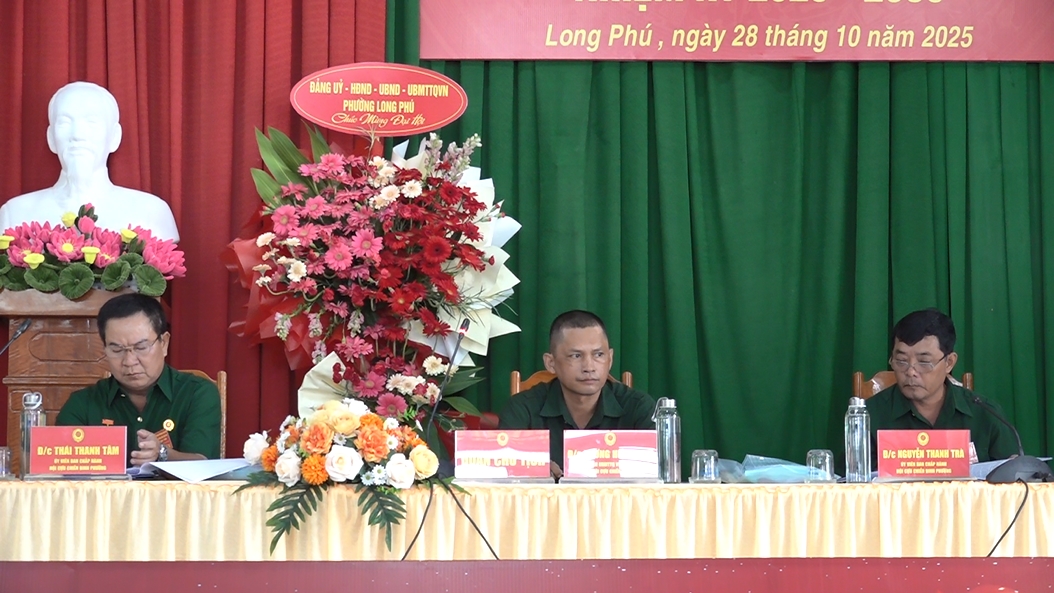 Chiều ngày 28/10/2025, Ban chấp hành Hội Cựu chiến binh phường Long Phú long trọng tổ chức Đại hội đại biểu Hội Cựu chiến binh phường Long Phú lần thứ VIII, nhiệm kỳ 2025-2030. Đến dự có Phó Bí thư thường trực Đảng uỷ phường Trần Thị Hoà Bình và Chủ tịch Uỷ ban MTTQVN phường Nguyễn Thanh Tuấn.
