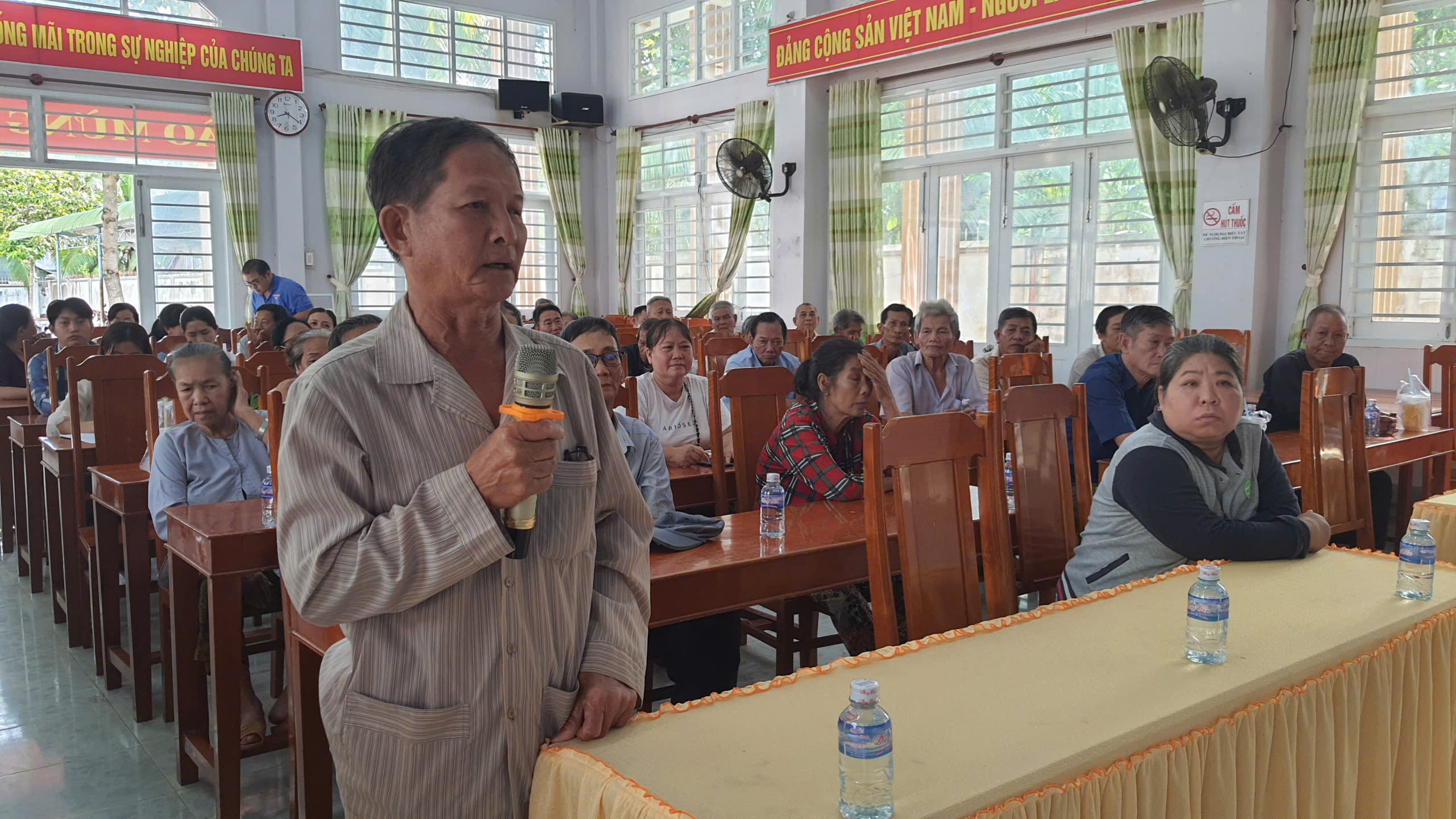 Bà con cử tri được nghe báo cáo tình hình thực hiện Nghị quyết của HĐND phường về nhiệm vụ phát triển kinh tế - xã hội, an ninh quốc phòng 6 tháng đầu năm 2025 và phương hướng nhiệm vụ 6 tháng cuối năm 2025. Cử tri phấn khởi trước sự phát triển kinh tế - xã hội của phường trong thời gian qua, đồng thời bà con cử tri có ý kiến, kiến nghị góp phần phát triển kinh tế địa phương như: Thắp sáng đèn đường tại ngã 3 Kim Long và bờ đông Kênh đào; tăng cường công tác bảo vệ trẻ em và học sinh khi bước vào năm học mới; tình trạng thanh thiếu niên lạng lách, đánh võng, đảm bảo an toàn giao thông trên các trục đường lớn; tình trạng hàng gian, hàng giả, kém chất lượng đặc biệt là phân bón và thuốc BTVT,…