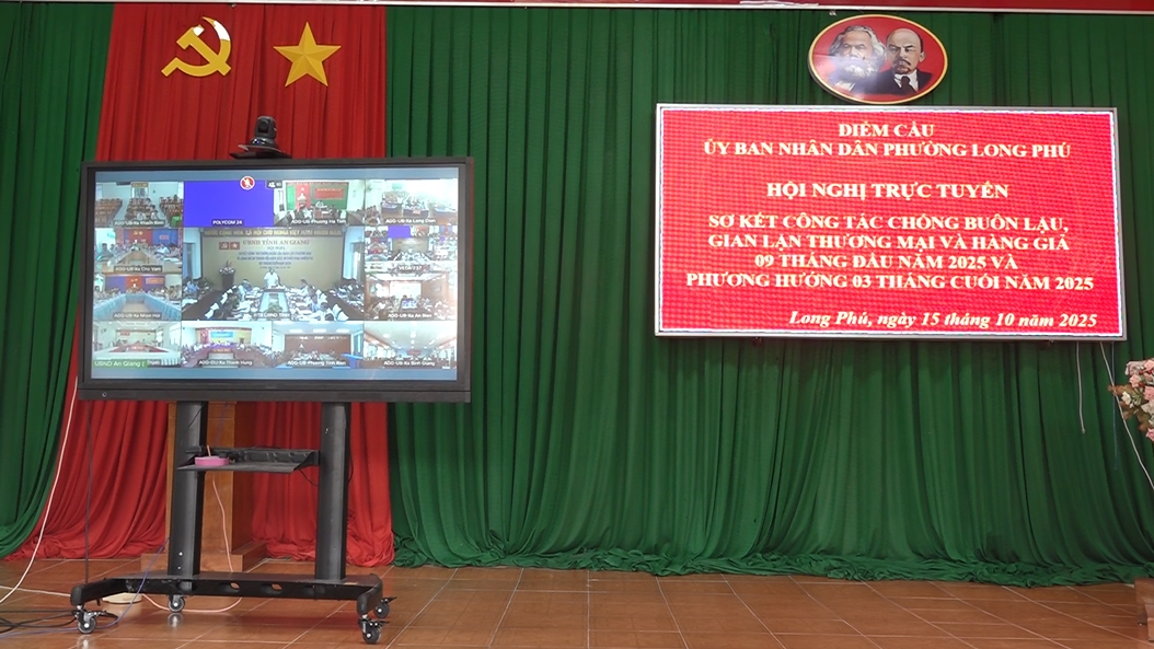 Sáng ngày 15/10, UBND tỉnh An Giang tổ chức Hội nghị sơ kết công tác chống buôn lậu, gian lận thương mại và hàng giả 9 tháng đầu năm và triển khai nhiệm vụ 3 tháng cuối năm 2025. Đồng chí Nguyễn Thanh Phong, Ủy viên Ban Thường vụ Tỉnh ủy, Phó Chủ tịch Thường trực UBND tỉnh, Trưởng Ban Chỉ đạo chống buôn lậu, gian lận thương mại, hàng giả tỉnh An Giang (Ban Chỉ đạo 389/AG) chủ trì hội nghị. Dự tại điểm cầu Long Phú có Phó Bí thư Đảng ủy, Chủ tịch UBND phường Phan Hồng Khanh và Phó Chủ tichi UBND phường Phạm Hồng Liễu.
