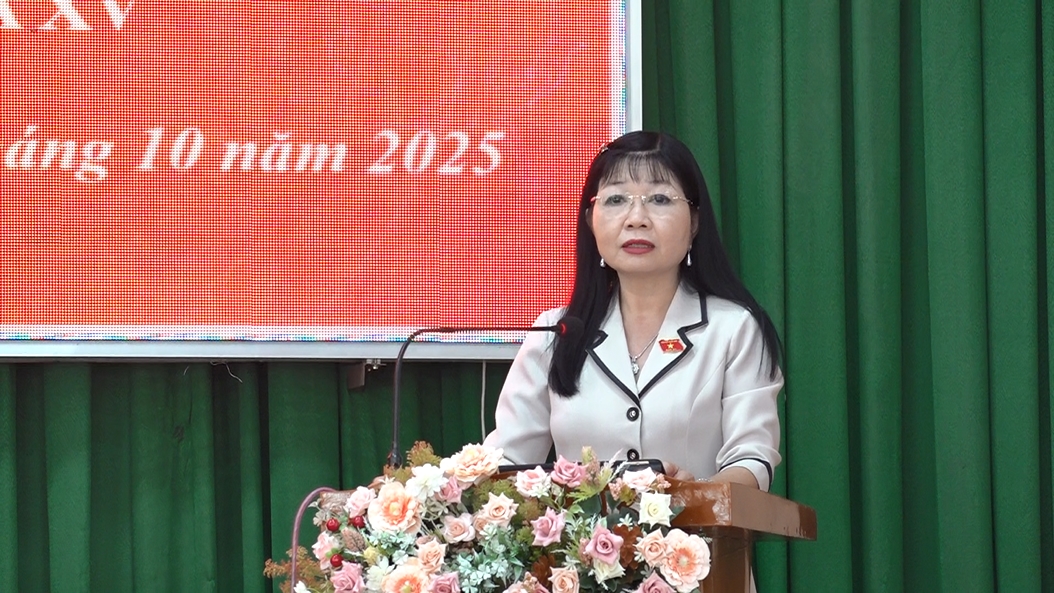 Tại buổi tiếp xúc, Phó Bí thư Tỉnh ủy, Trưởng đoàn Đại biểu Quốc hội tỉnh, Chủ tịch Ủy ban MTTQ Việt Nam tỉnh An Giang Trần Thị Thanh Hương thông tin dự kiến chương trình kỳ họp và một số nội dung có liên quan đến Kỳ họp thứ 10, Quốc hội khóa XV; báo cáo tình hình hoạt động của Đoàn đại biểu Quốc hội tỉnh An Giang thời gian qua.