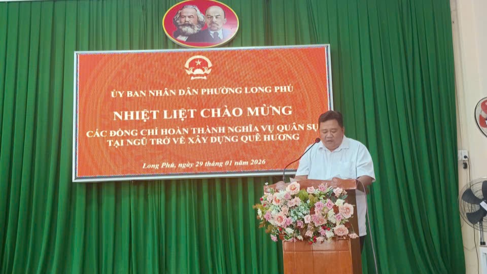 Sáng ngày 29/01/2026, Hội đồng nghĩa vụ phường Long Phú tổ chức gặp mặt, đón nhận các quân nhân đã hoàn thành nghĩa vụ quân sự, xuất ngũ trở về địa phương năm 2026. Dự buổi gặp mặt có các Phó Bí thư Đảng uỷ, Chủ tịch UBND phường Phan Hồng Khanh và Chủ tịch UBMTTQ VN phường Nguyễn Thanh Tuấn cùng các quân nhân xuất ngũ và thân nhân.