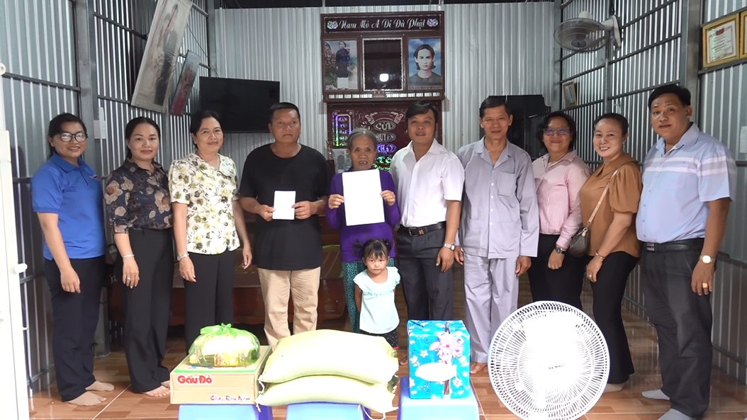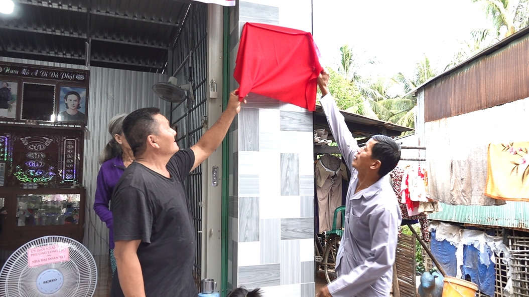 Căn nhà Đại đoàn kết được bàn giao cho gia đình ông Huỳnh Văn Phương, ngụ tại đường Kênh Đào, khóm Long Thạnh - là hộ cận nghèo có hoàn cảnh khó khăn về nhà ở. Căn nhà mới có diện tích 32 mét vuông, xây bó nền, nền lát gạch men, vách và mái lợp tole với kinh phí 50 triệu đồng từ nguồn vận động của Ban trị sự PGHH Long Châu, gia đình đóng góp và nguồn hỗ trợ MTTQ phường.